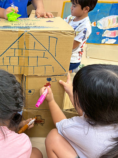 オンライン英会話レッスンやキッズバランス、SIあそびなど保育内容を充実。